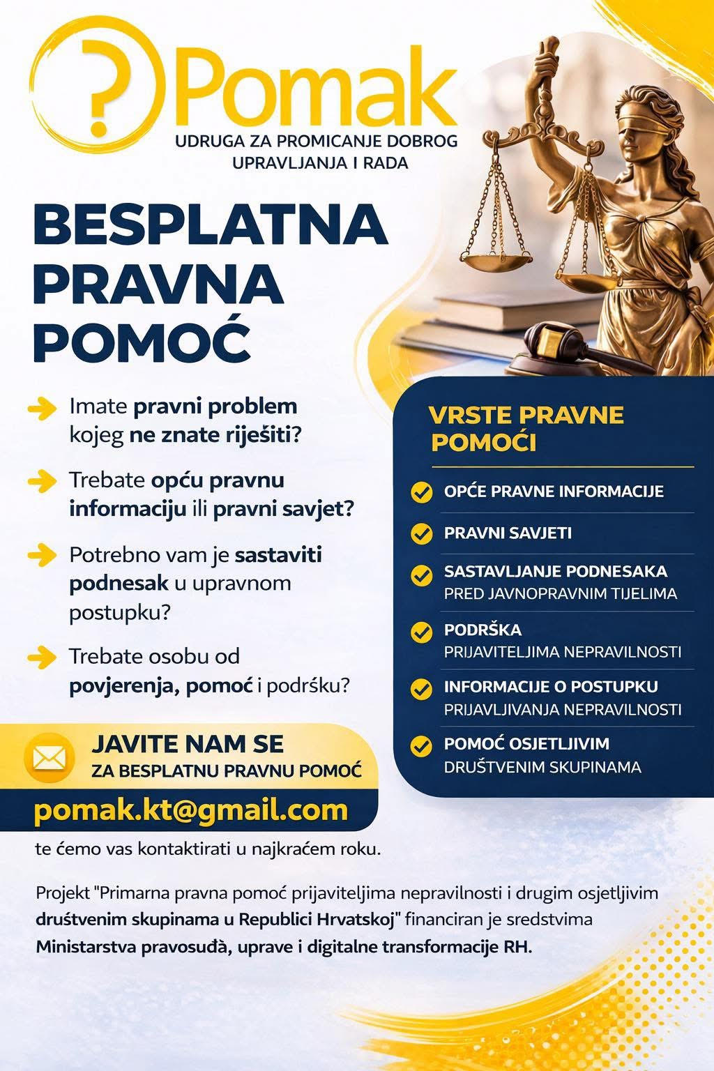 Udruga POMAK pruža besplatnu pravnu pomoć na području cijele Hrvatske: